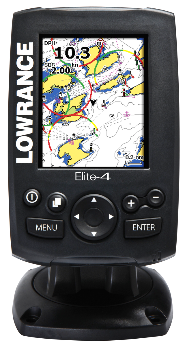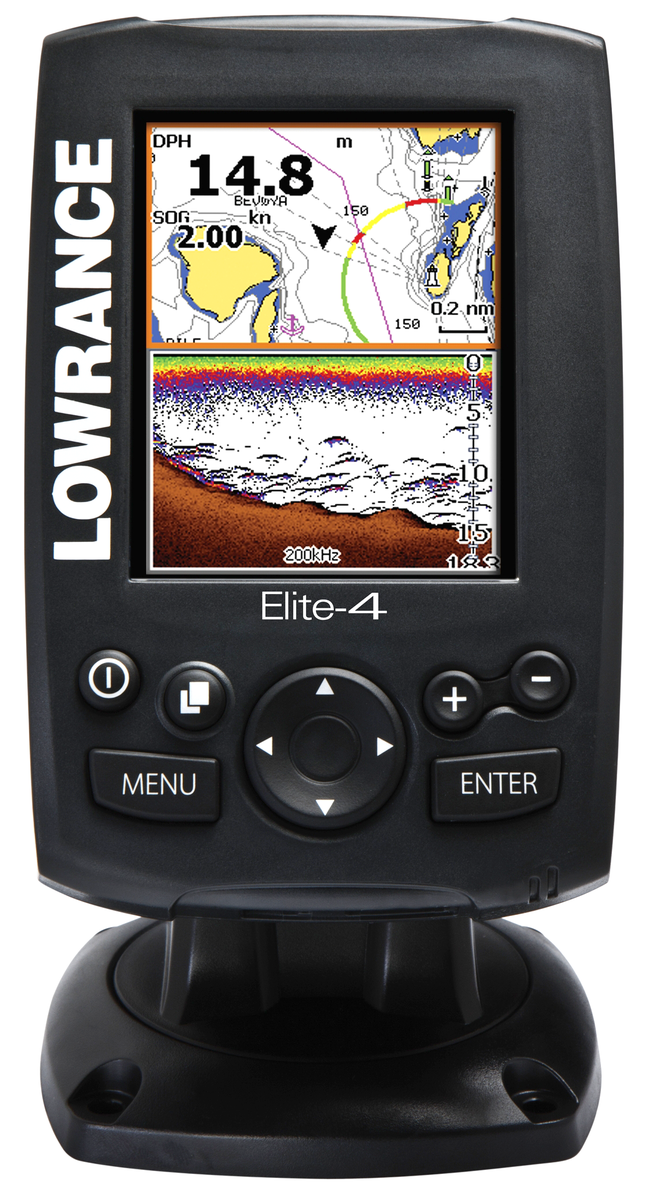 Karttaplotteri, jossa kaikuluotain Lowrance Elite-4