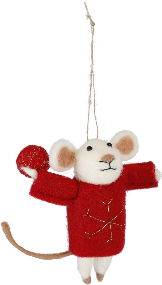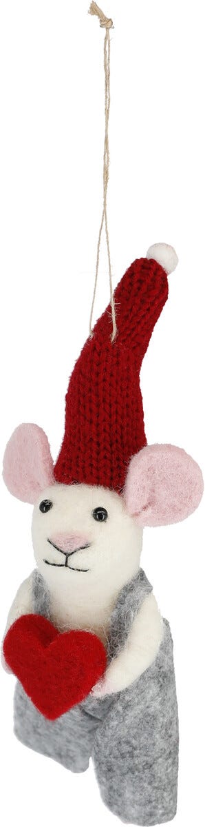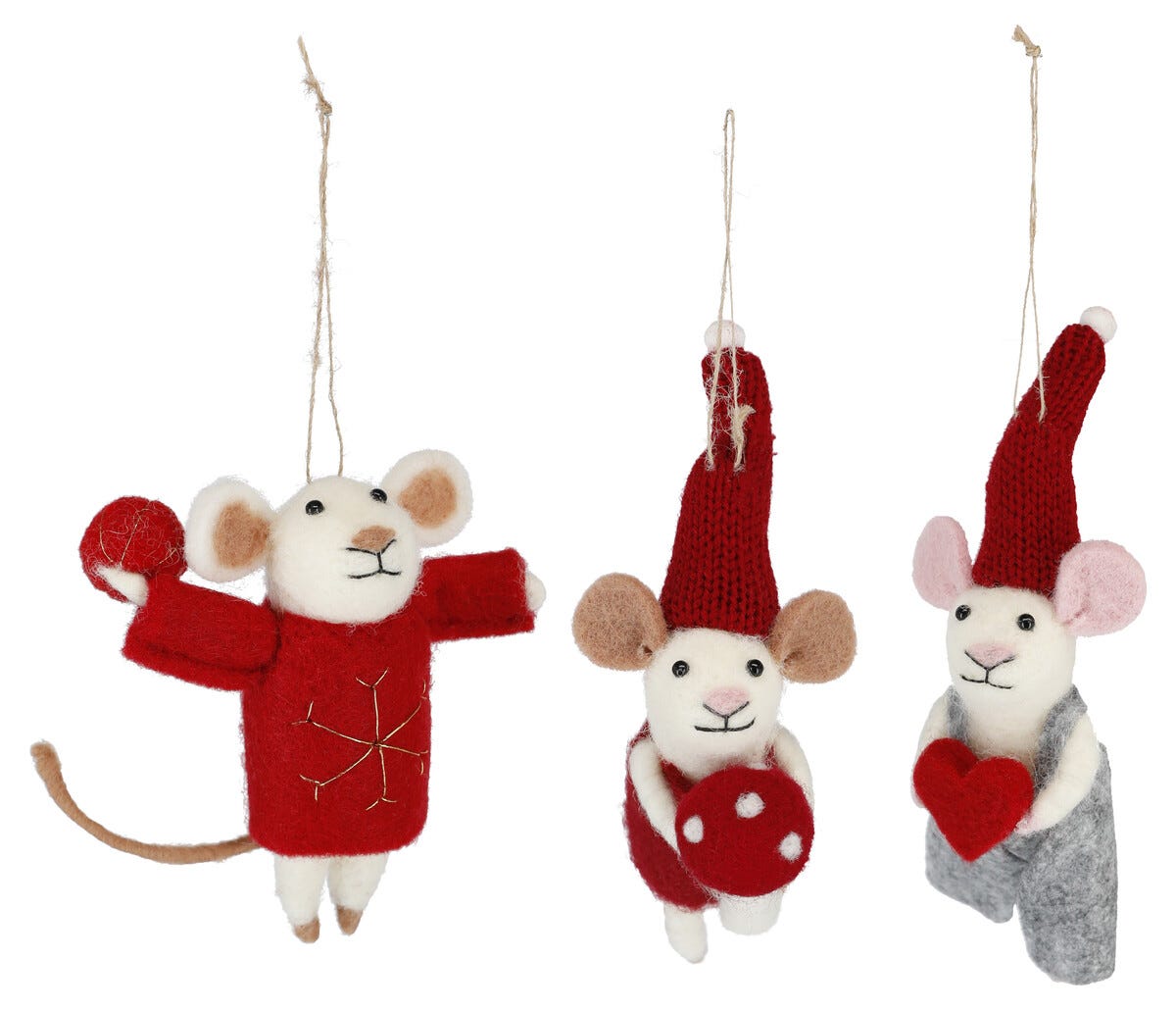 Handgjorda möss i tovad ull med snöre, 3-pack