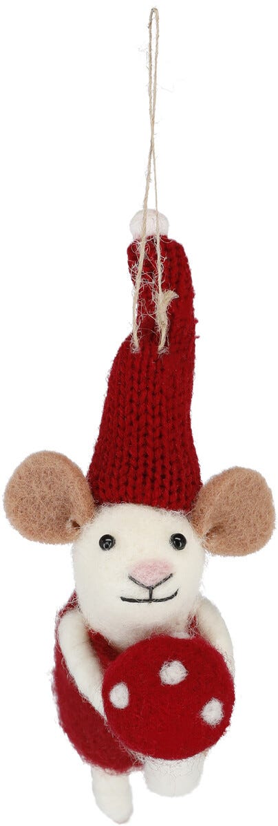 • Julmöss i vitt, rött och grått – söta dekorationsfigurer för jul och vinter.