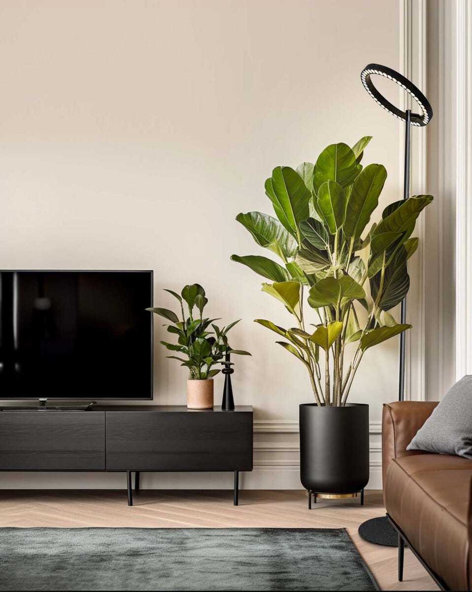 • Hög golvlampa med växtlampa – extra ljus för stora växter inomhus (IP20).