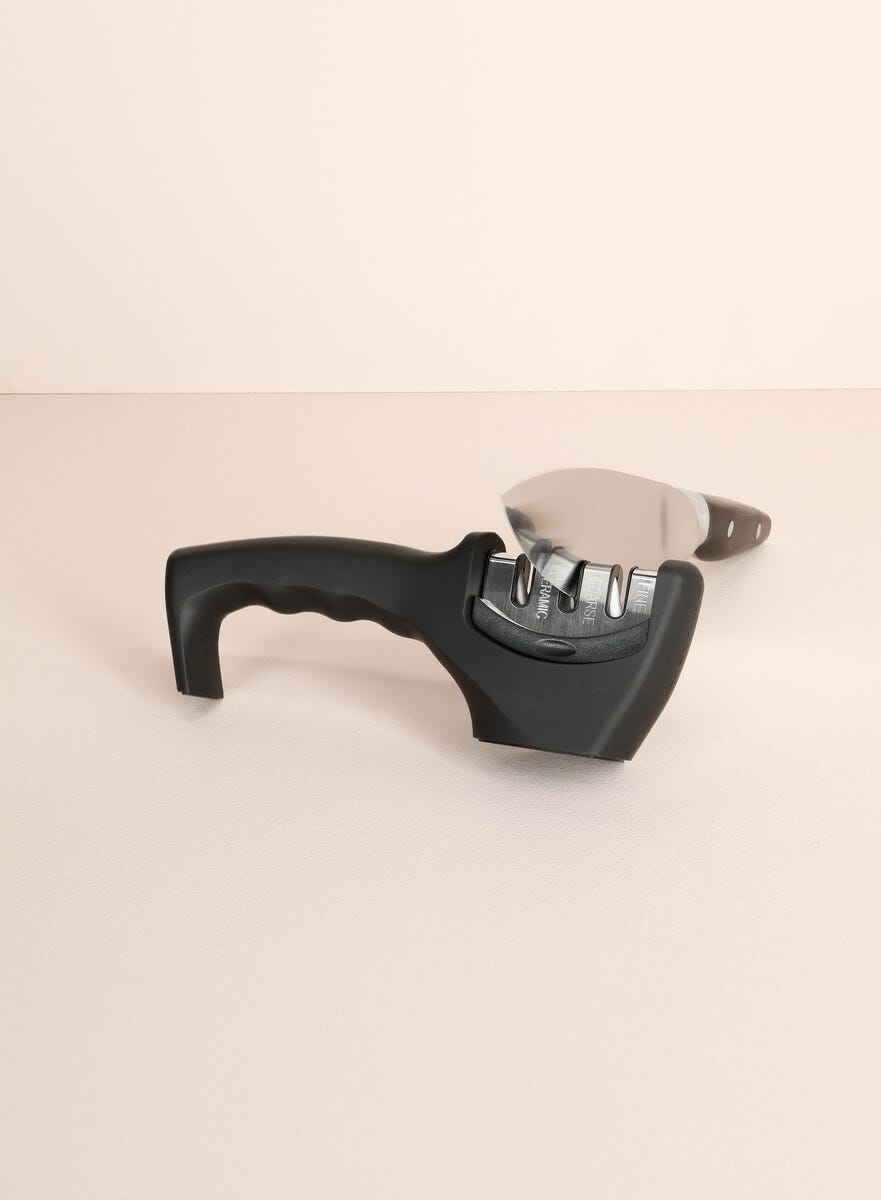 • Smidig knivvässare med 3 olika grovlekar – alltid vassa knivar i lådan.