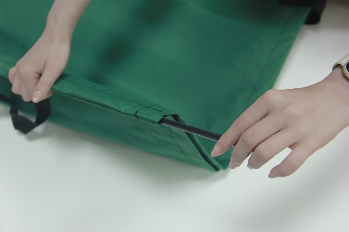 • Kolmikulmainen puutarhasäkki, jossa tukikepit – pysyy itsestään auki.
