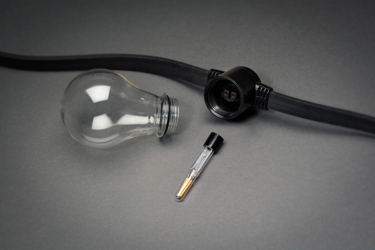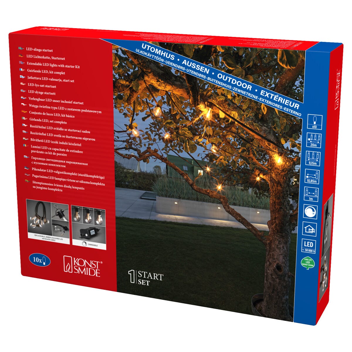 • Konstsmide-valoketju, jossa hehkulampun muotoiset LED-lamput – pituus 10 metriä.