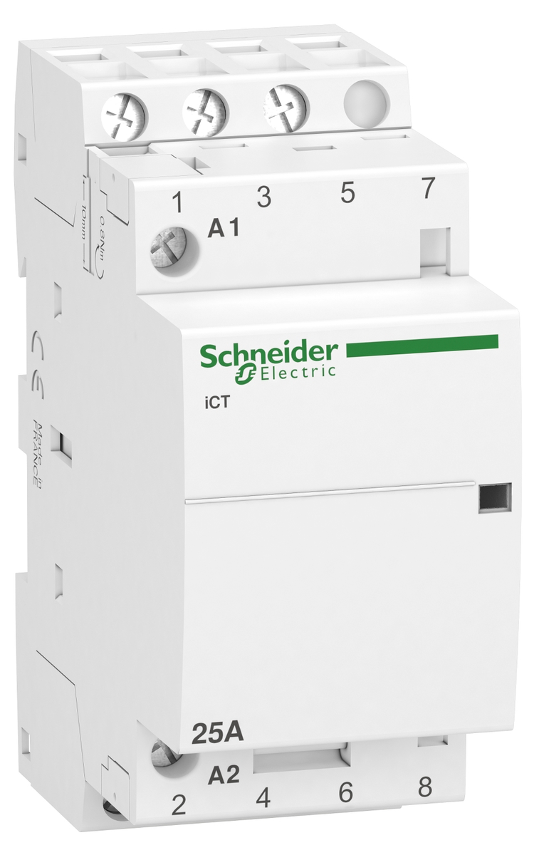 • 3-napainen kontaktori, asennetaan DIN-kiskoon – 25 A:n nimellisvirta.