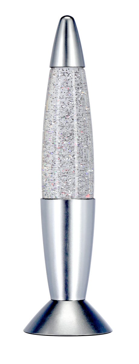 • Glittret virvlar runt i lampan och blir belyst med RGB-färger – i rött, grönt och blått.