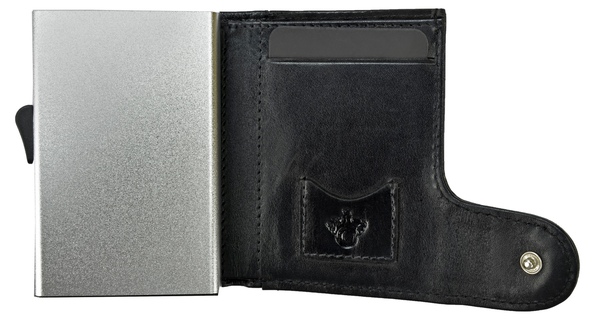 • Ylellinen korttilompakko aitoa nahkaa ja alumiinia.