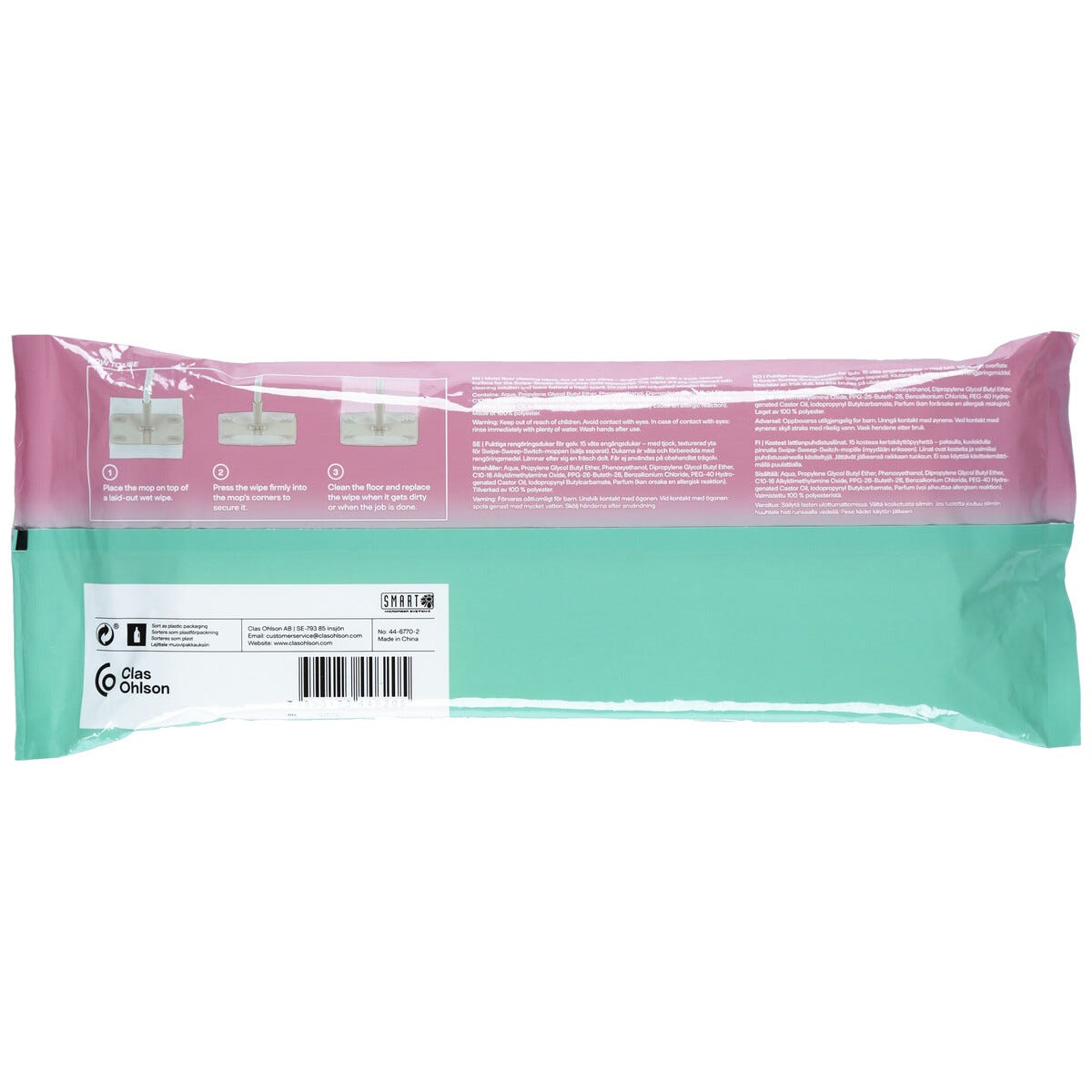 • Puhdistusainetta sisältävät kertakäyttöiset moppiliinat säästävät aikaa ja jättävät pinnat kiiltäväksi.