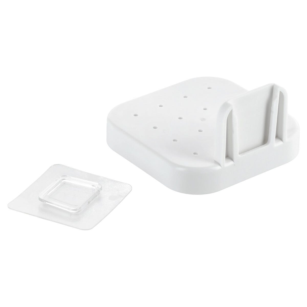 Kylpyhuoneen hylly muovi, tarrakiinnitys 9,3 x 9,3 x 5,4 cm, valkoinen