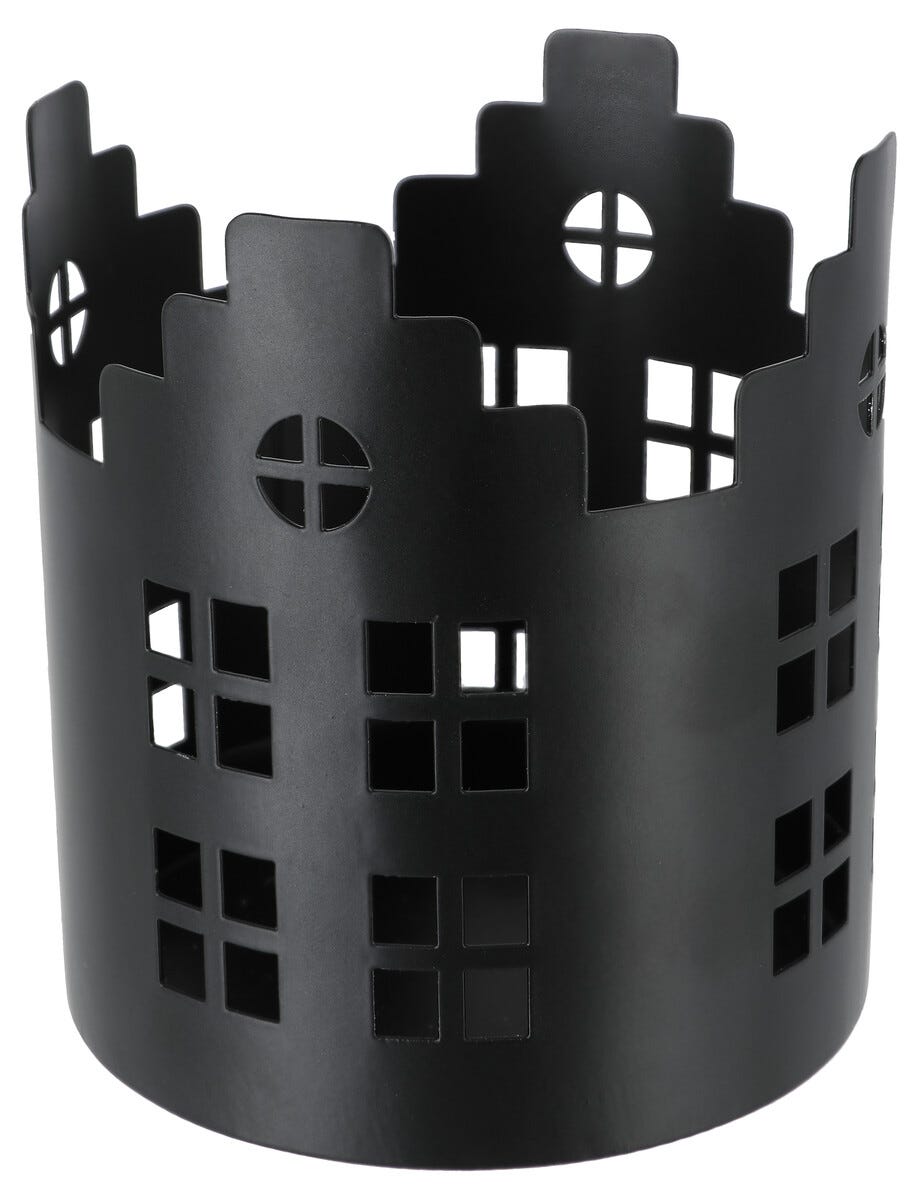 Ljuslykta hus i metall, svart