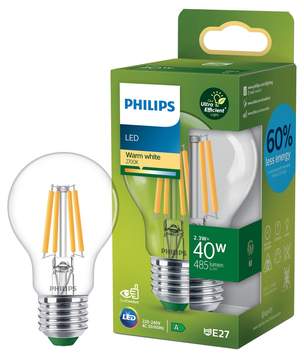 Varmvit LED-lampa E27 A60 2,3 W, Philips Ultra Efficient