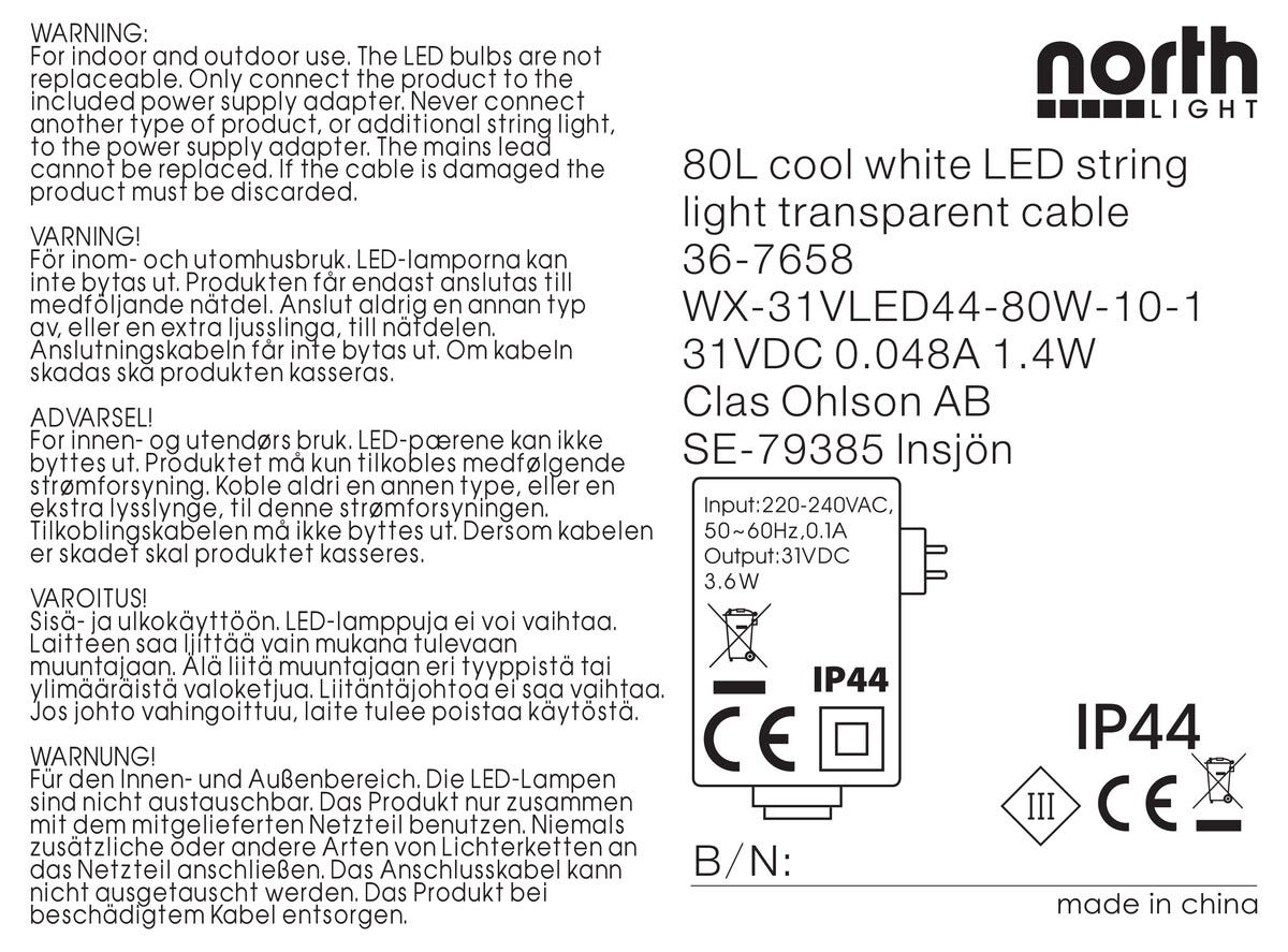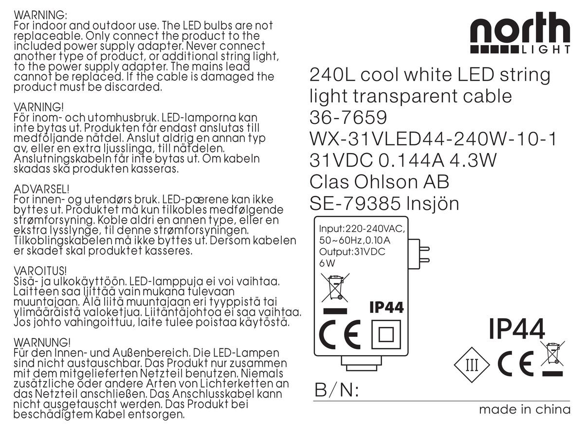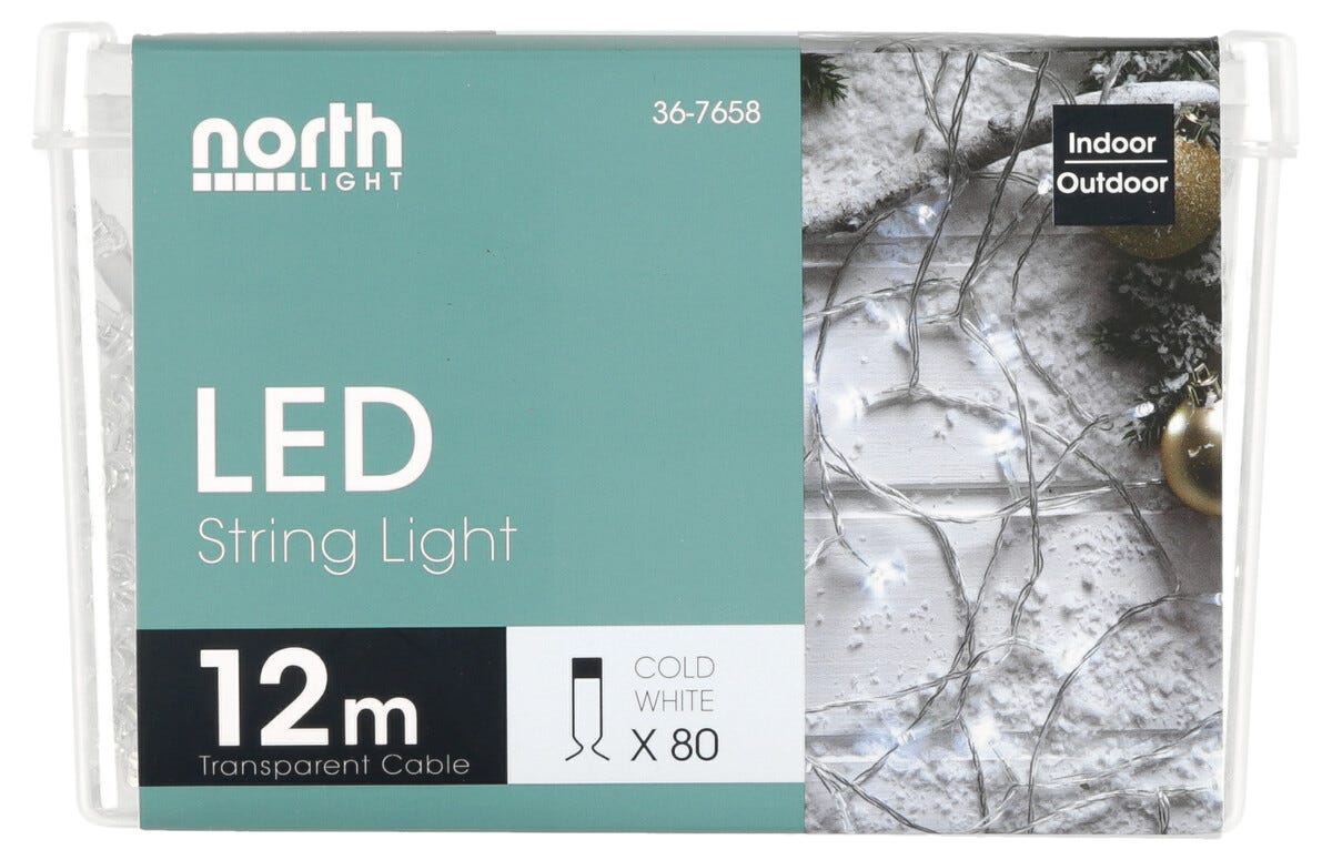 LED Läpinäkyvä valoketju Northlight, kylmän valkoinen