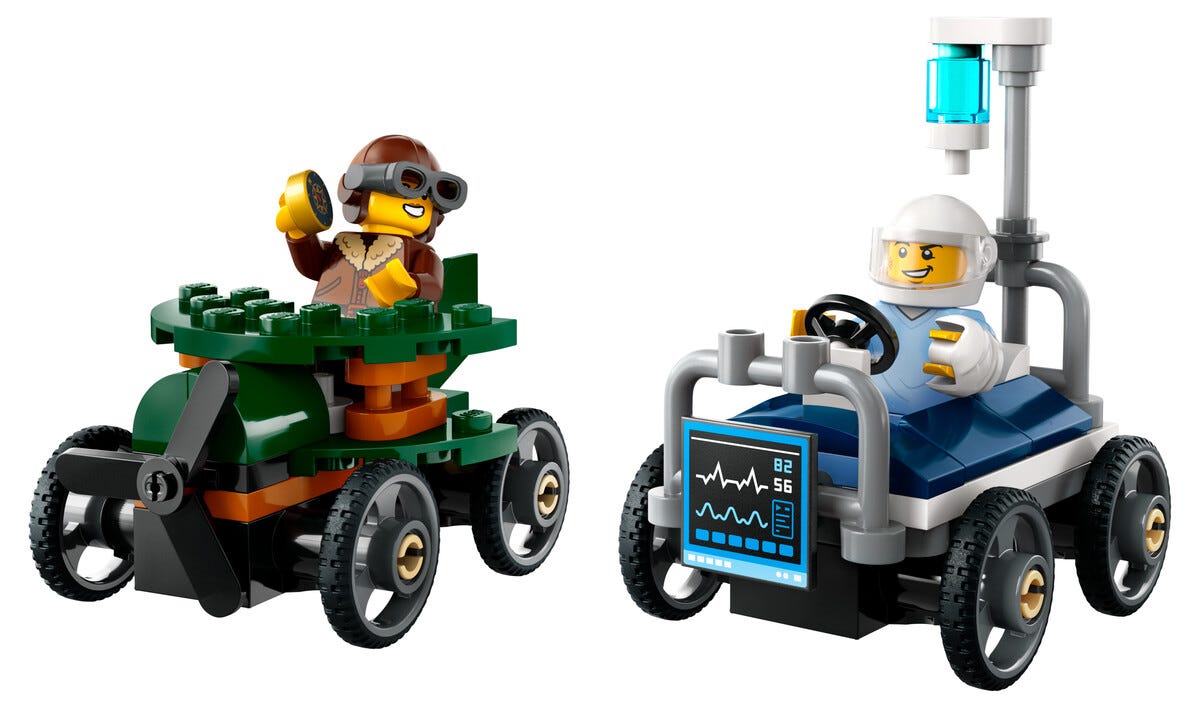 LEGO City Lentokone vastaan sairaalasänky -kilpa-autopakkaus 60459, yli 5-vuotiaille