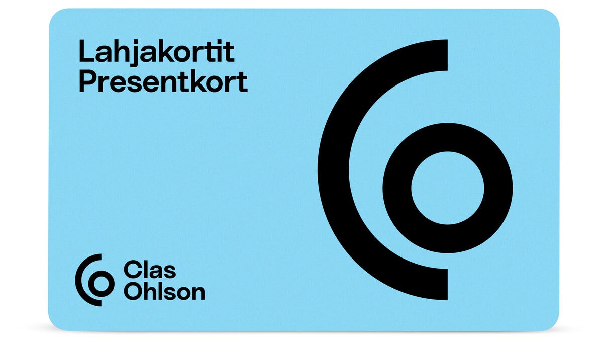 • Lahjakortti toimii maksutapana kaikissa myymälöissämme, ei kuitenkaan Clas Ohlsonin verkkokaupassa.
