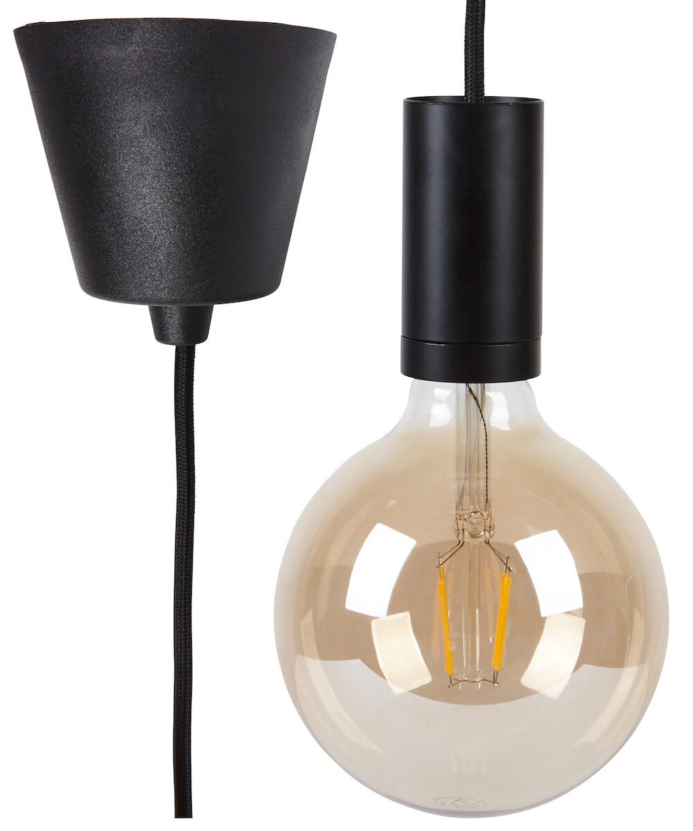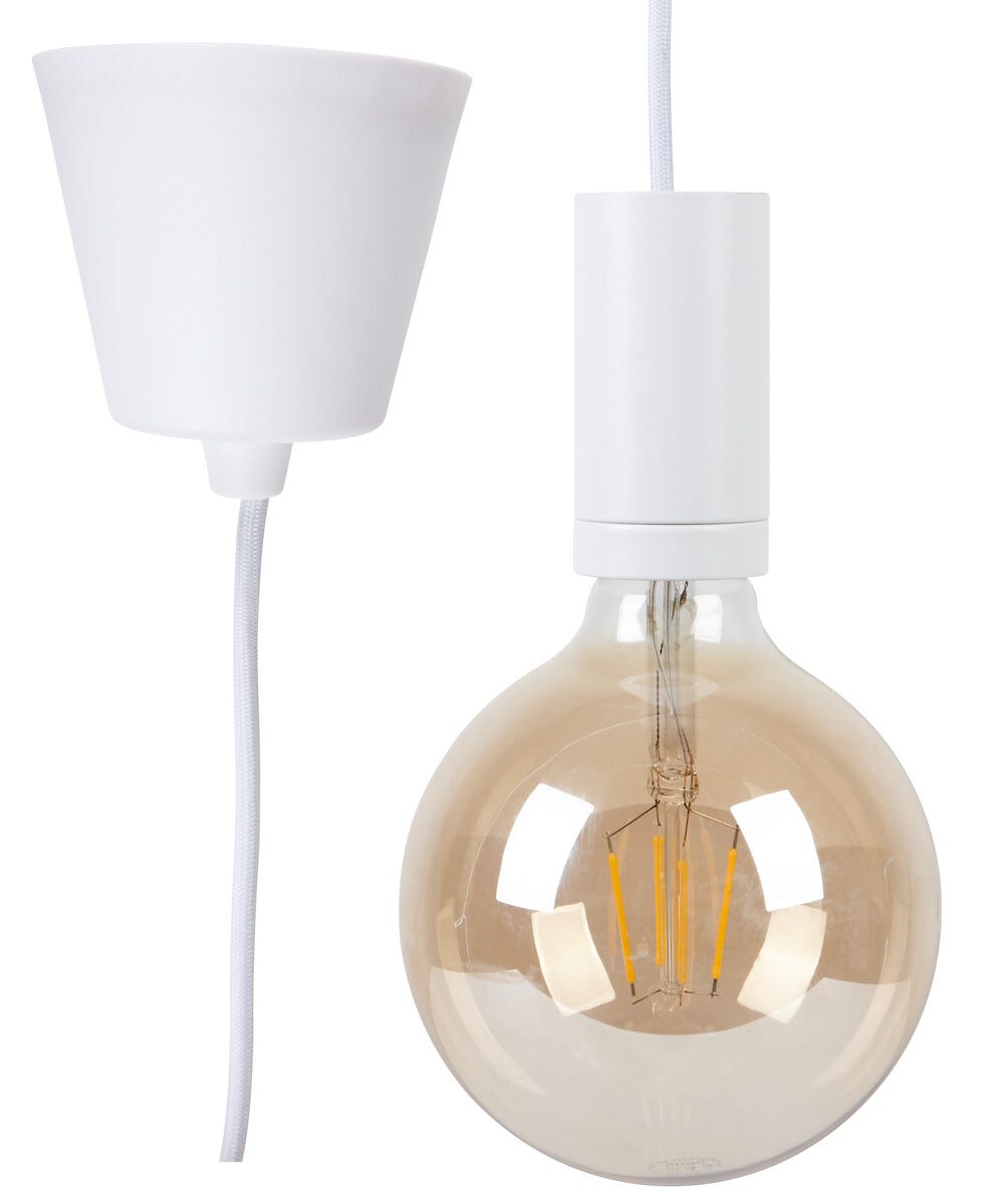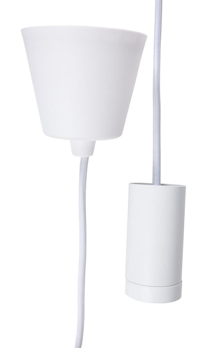 • 2 m:n tekstiilijohto, jossa kattokupu, lampunpidike ja varjostinrengas.
