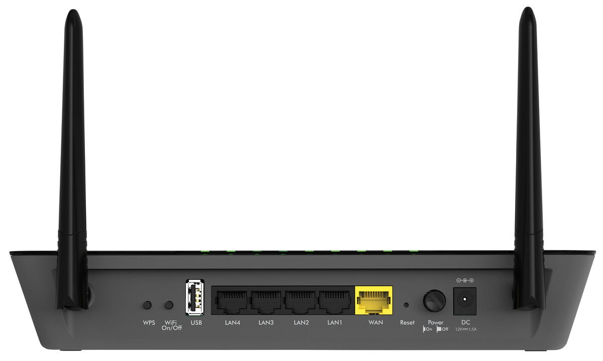 Reitittimen USB-portti mahdollistaa ulkoisen kovalevyn liittämisen verkkojakamista varten. Netgear Genie -sovellus mahdollistaa laitteen helpon hallinnan puhelimella tai tabletilla. DLNA medioiden helppoon jakamiseen televisioon ja mediasoittimeen. Helppo Push 'N' Connect -liitäntä. 4 LAN-gigabit-porttia ja WAN-portti.