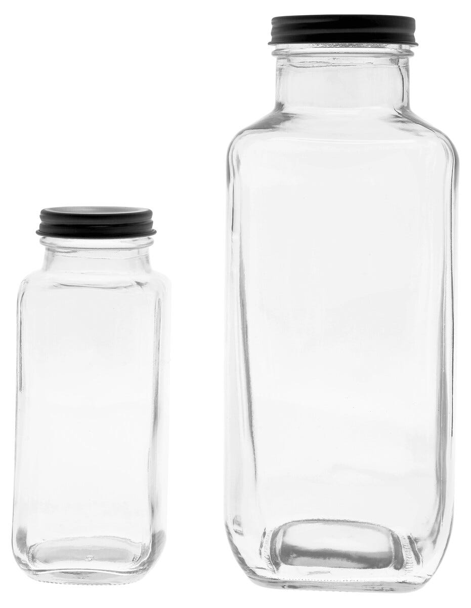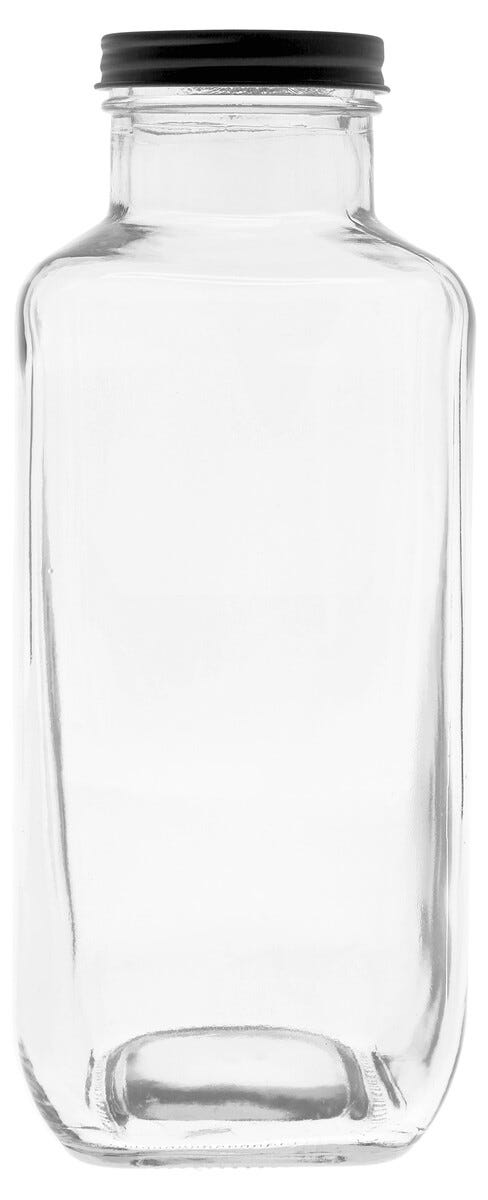• Glasflaska med skruvlock – kan användas om och om igen.