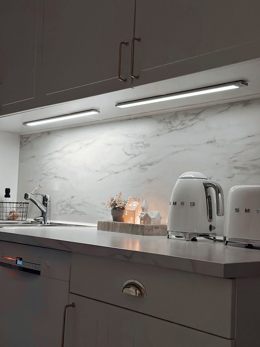 • Valaise työtasot ja kaapit anturin ohjaamalla akkukäyttöisellä LED-valaisimella – ladataan USB-kaapelilla.
