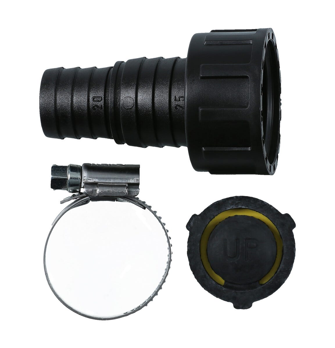 Sopii pumppuihin, joissa R25-liitäntä (kierre 33 mm) ja letkuliitäntä 3/4" (19 mm) ja 1" (25 mm). Käytä takaiskuventtiilin kanssa tai ilman.