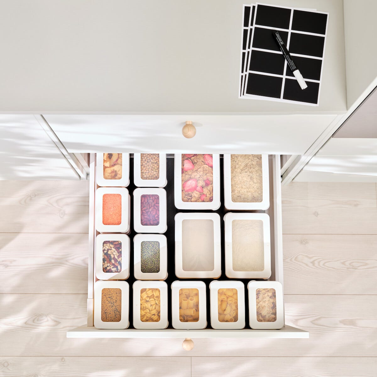 • Merkitse säilytyspurkit tarraetiketeillä – 45 x 70 mm.