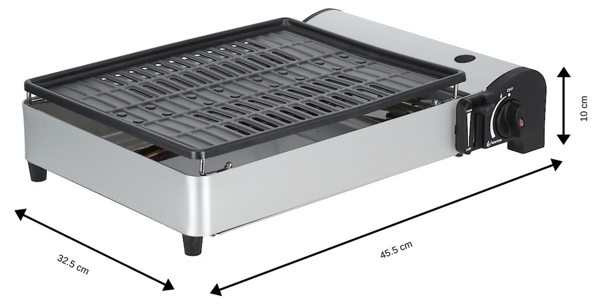 • Pieni, kannettava kaasugrilli – sytytä säätimellä, aseta lämpötila ja grillaa.
