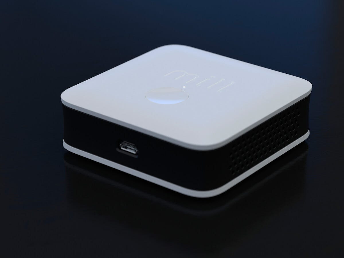 • Sovelluksella ohjattava anturi, joka mittaa ilmankosteutta, ilman epäpuhtauksia, lämpötilaa ja CO2-pitoisuutta.