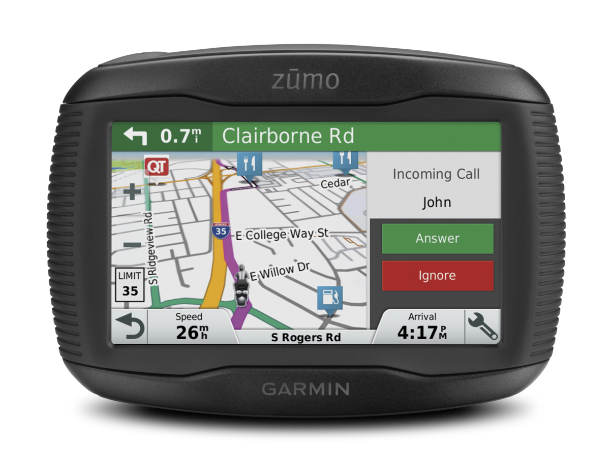 Bluetooth-liitännän ja kuulokkeiden avulla voit helposti hallita puheluita ja musiikin toistoa suoraan Garmin Zumo -navigaattorin näytöltä.