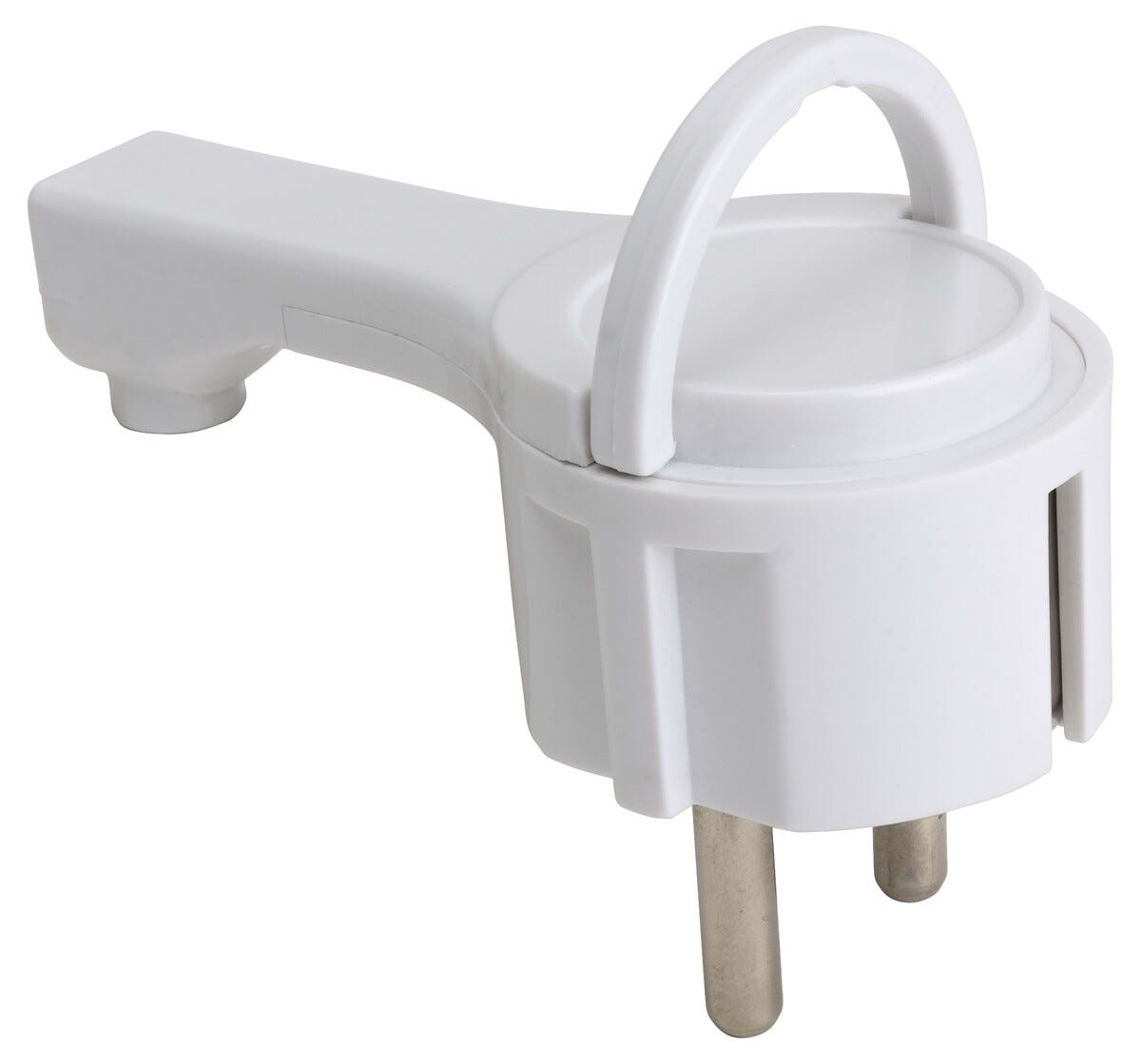 • Litteä kulmapistoke – tulee vain 10 mm ulos pistorasiasta.