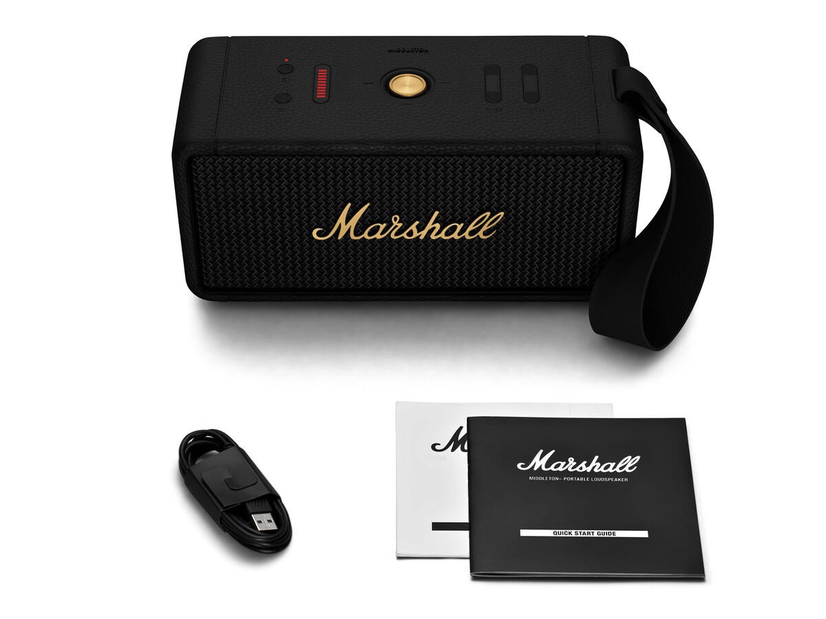 Marshall Middleton Kannettava kaiutin, musta/messinki