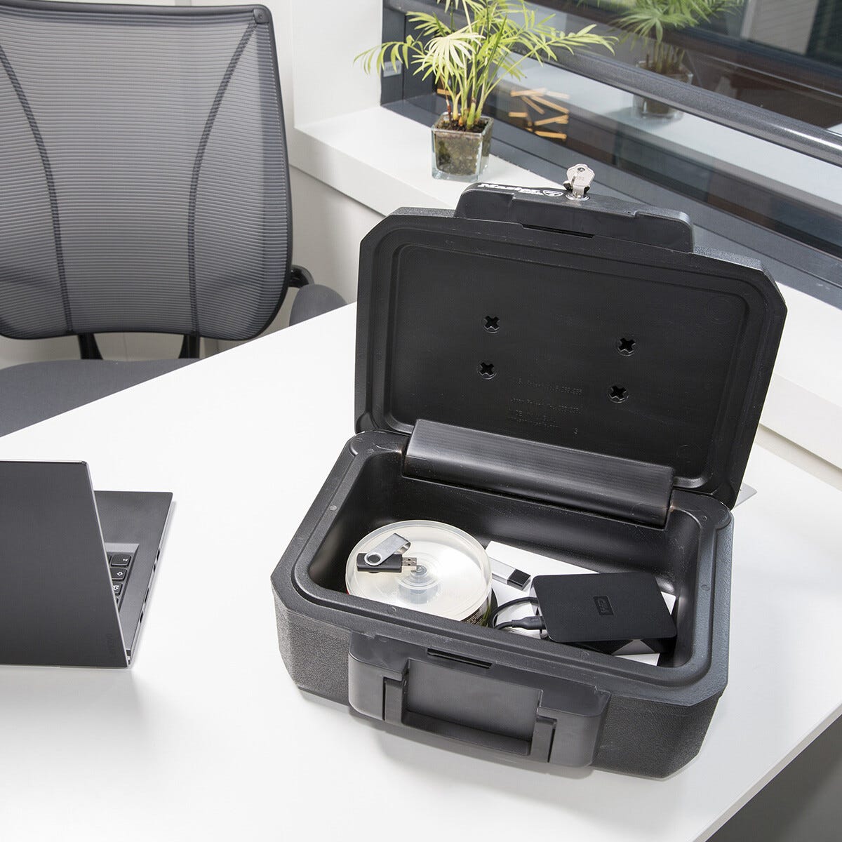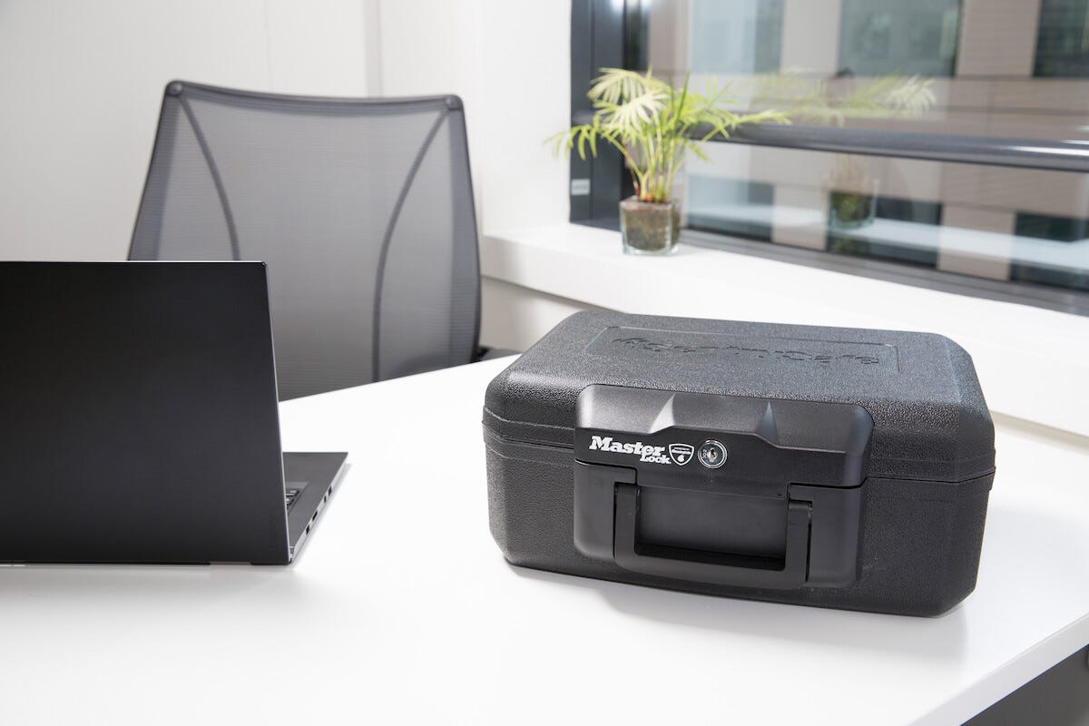 • Masterlock L1200 – paloturvallinen ja lukittava säilytyslaukku (mukana 2 avainta).