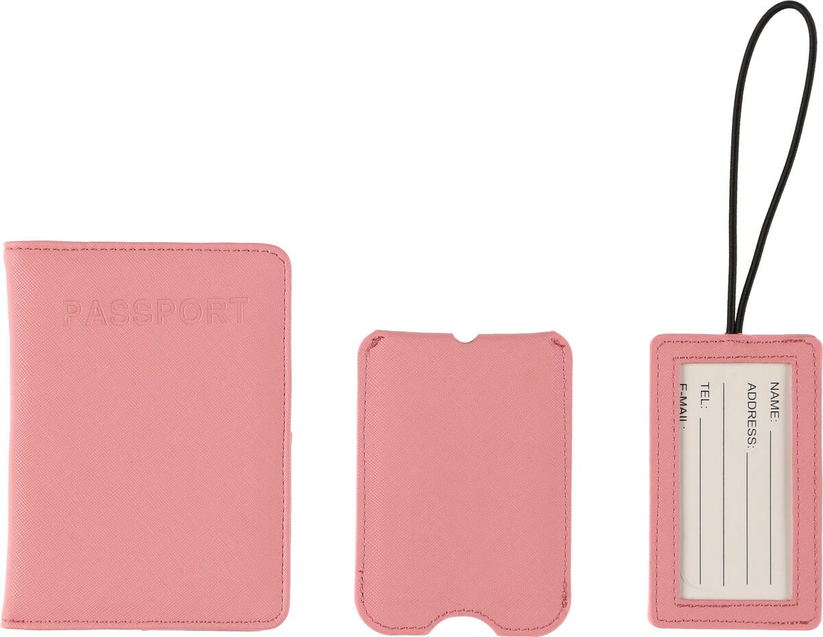 Matkasarja, passikotelo ja nimilappu, keinonahka