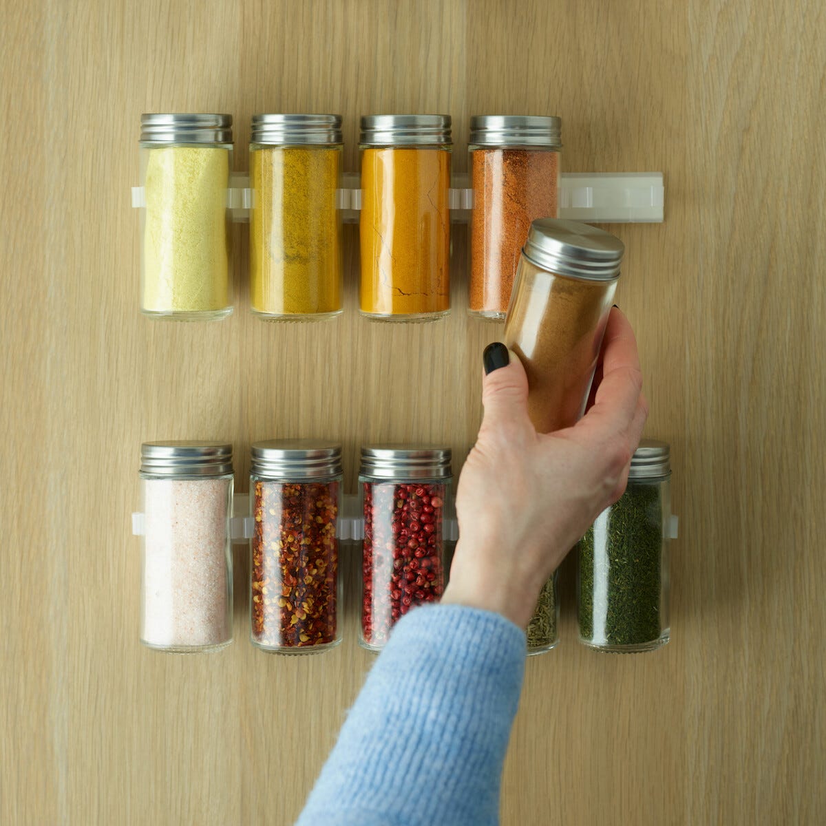 • Säilytystilaa 20 maustepurkille – kiinnitetään pitävällä 3M-teipillä (mukana).