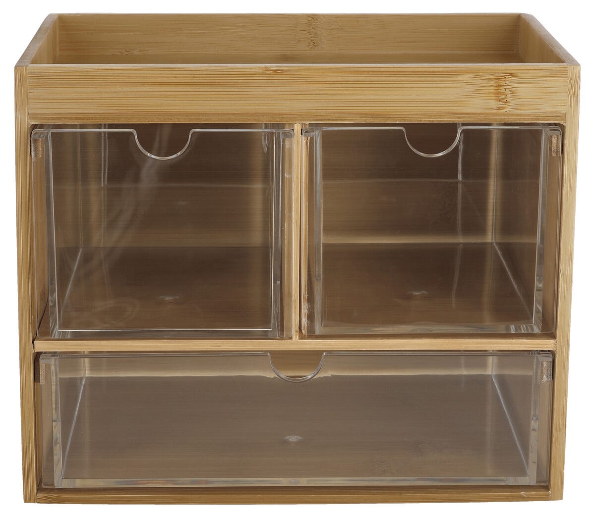 Meikkiteline, jossa 3 laatikkoa, bambu