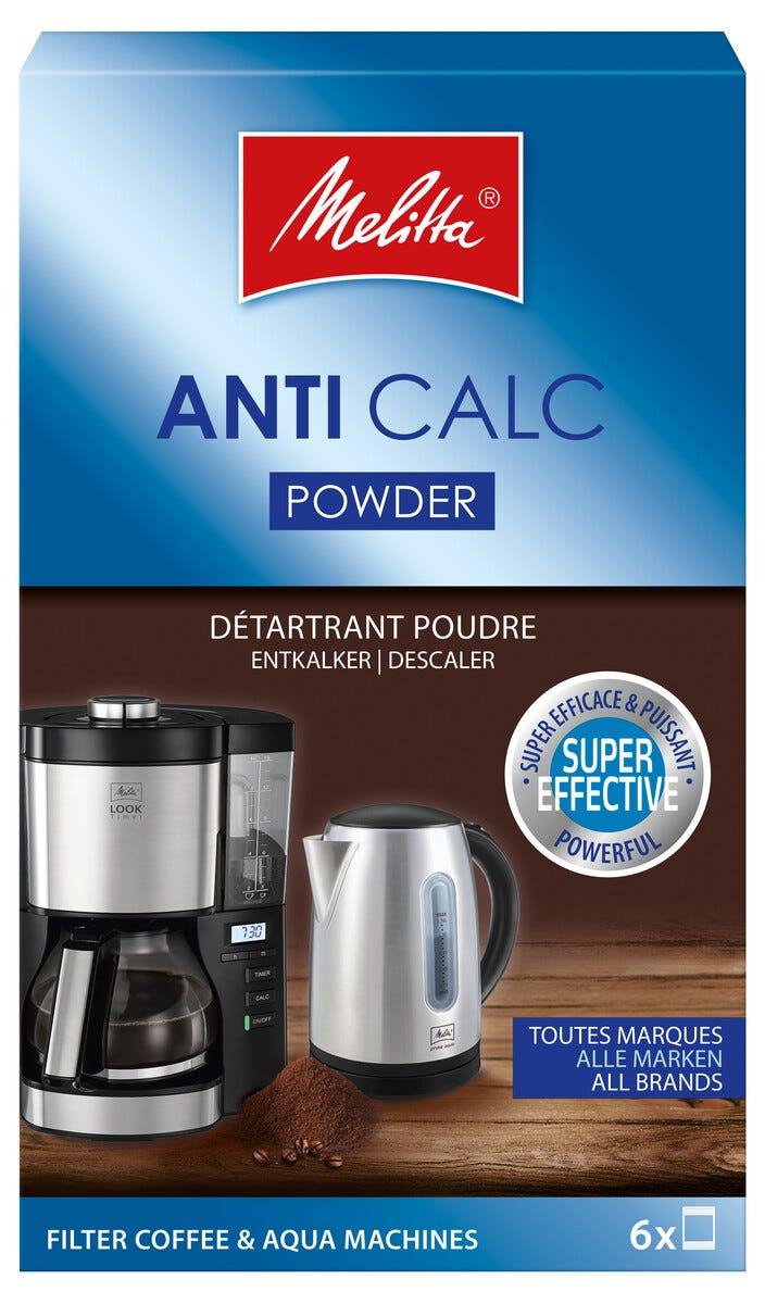 • Melitta Anti Calc Powder – annospussit kalkin tehokkaaseen poistamiseen ja puhdistamiseen.