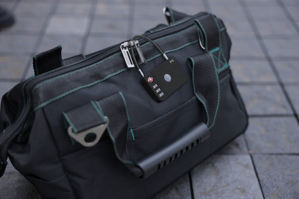 • Riippulukko, jossa sisäinen paikannin ja numerokoodi – TSA-hyväksytty.