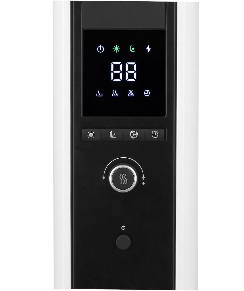 • Termostaatti, päivä- ja yölämpötila ja 3 tehoa – 800 W, 1200 W ja 2000 W.