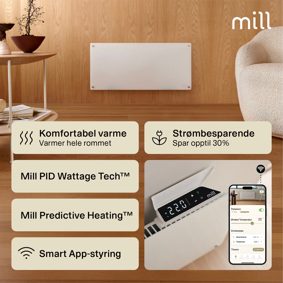 Mill Glass Smart WiFi Sähköpatteri Gen. 4, valkoinen, 1000 W
