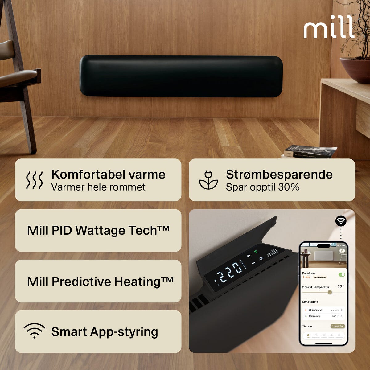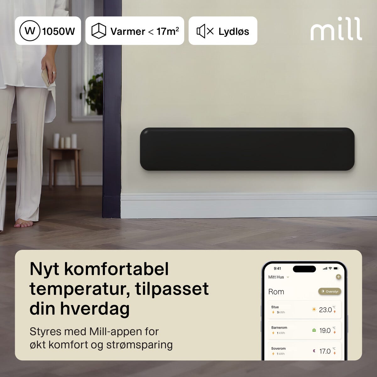 • Mill Invisible Gen. 4 – smart panelelement i minimalistisk design (1050 W).
