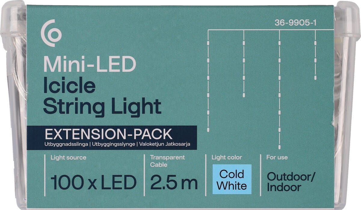 • Pidennä kylmän valkoista mini LED -jääpuikkovalosarjaa – liitetään suoraan aloitussarjaan (myydään erikseen).