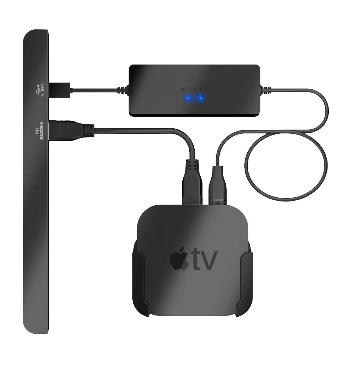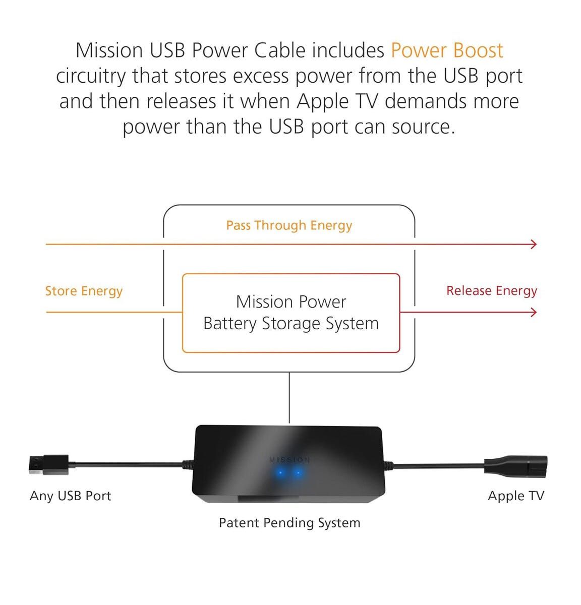 • Mission USB-adapter för Apple TV minskar kabeltrassel och frigör eluttag.