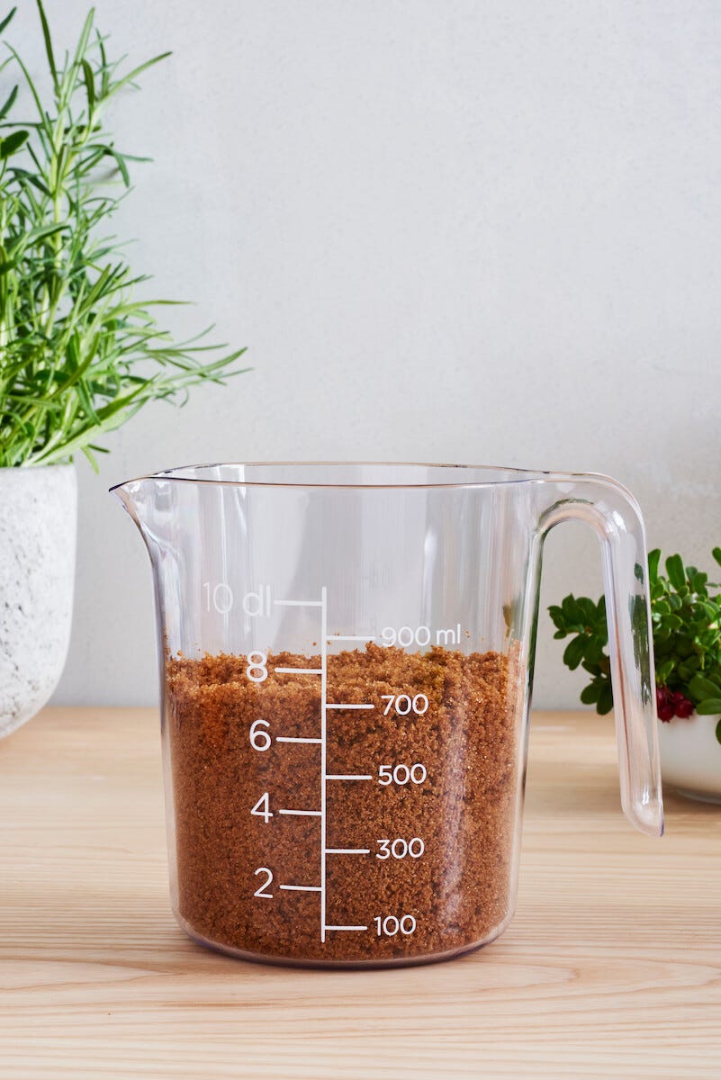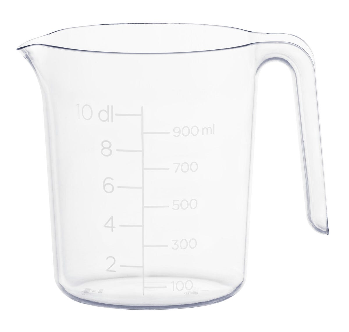 • Läpinäkyvä litramitta muovia – selkeä dl-asteikko.