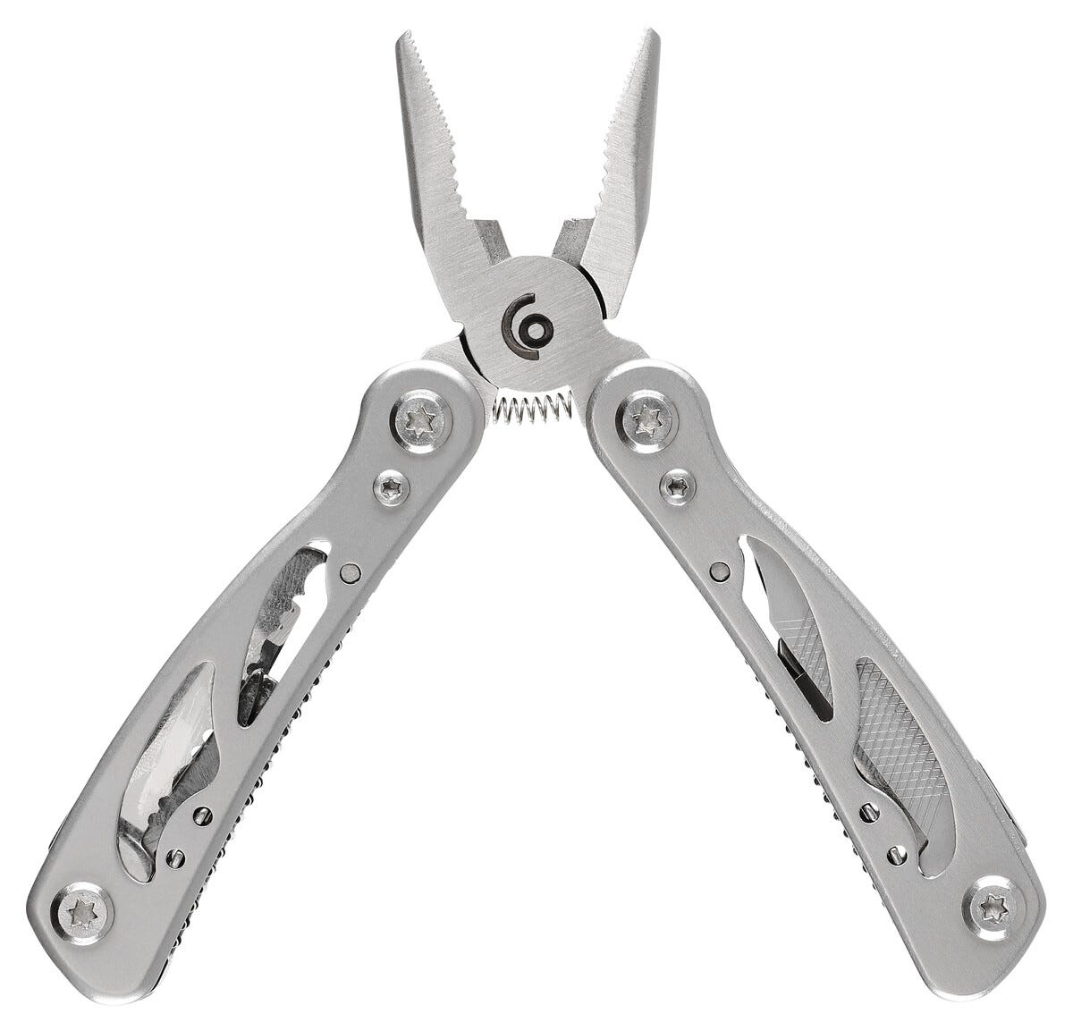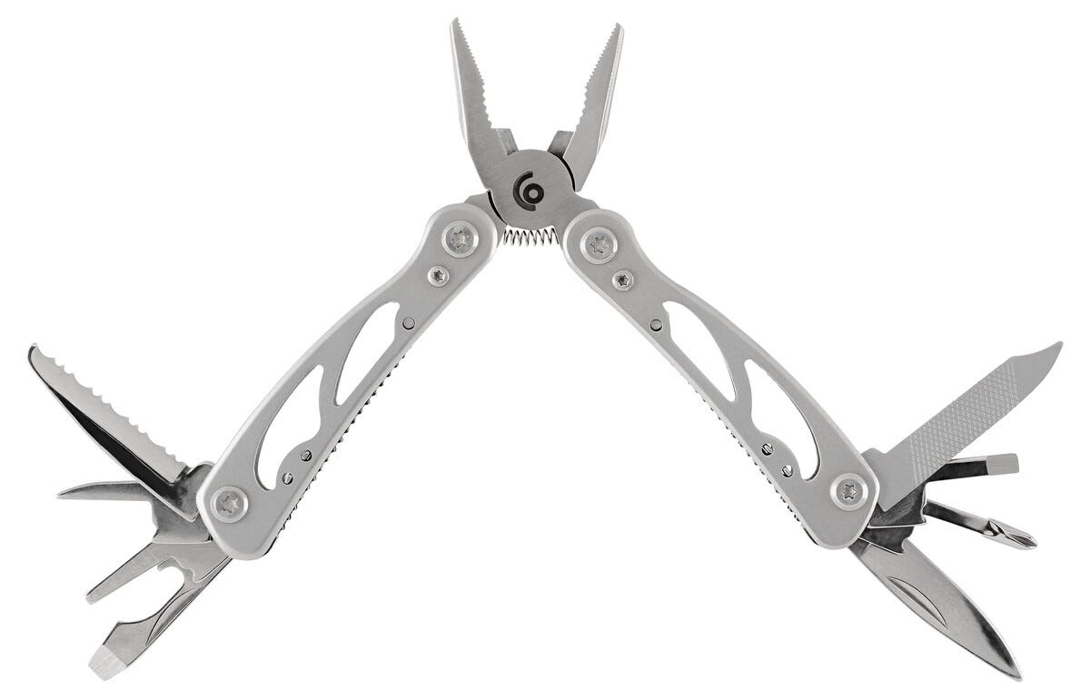 • 12 ruostumattomasta teräksestä valmistettua työkalua - täydellinen kalareissulle, metsäretkelle tai pieniin korjaustöihin.