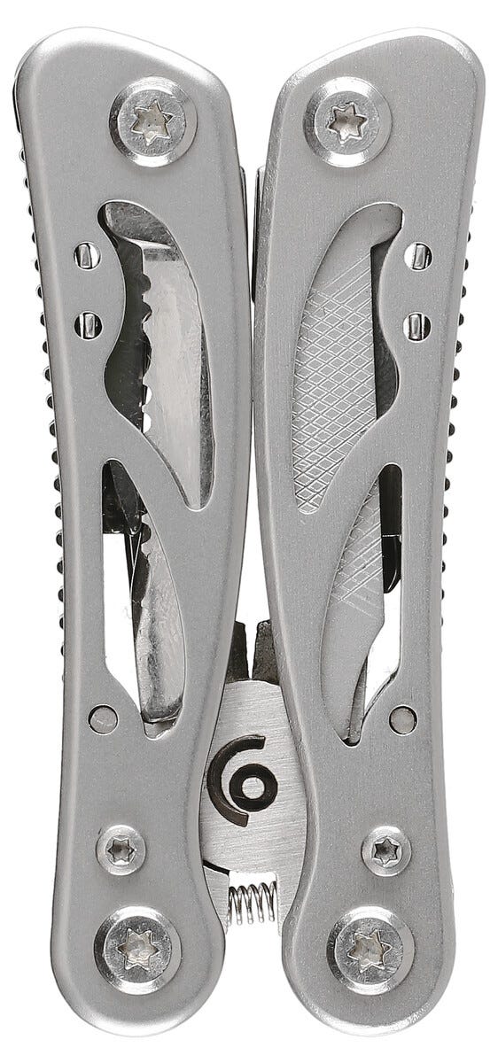 • Ruostumattomasta teräksestä valmistettu monitoimityökalu, jossa 2 veistä ja 10 muuta toimintoa.
