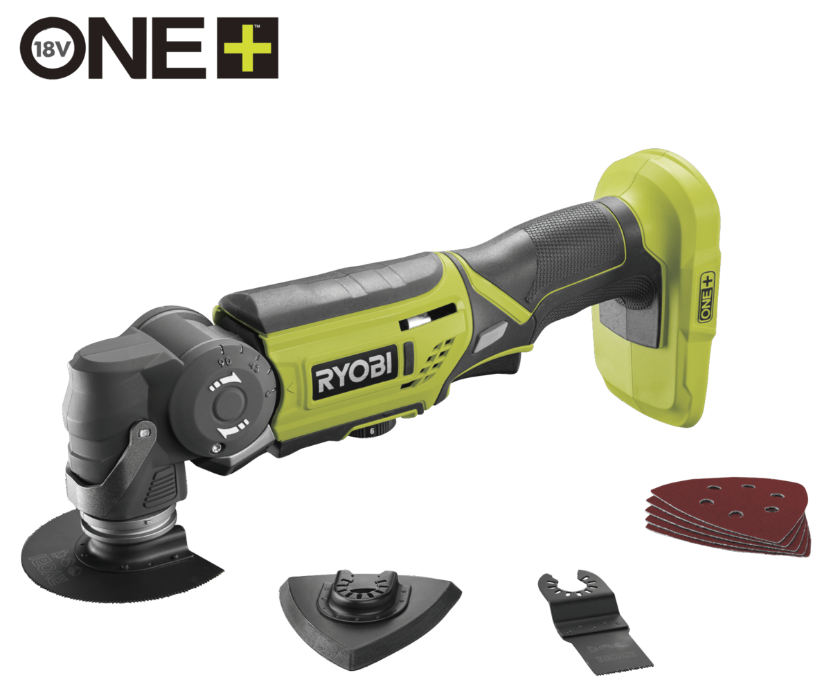 • Ryobi R18MT-0 – monitoimityökalu, jossa säädettävä 5-asentoinen monitoimipää.