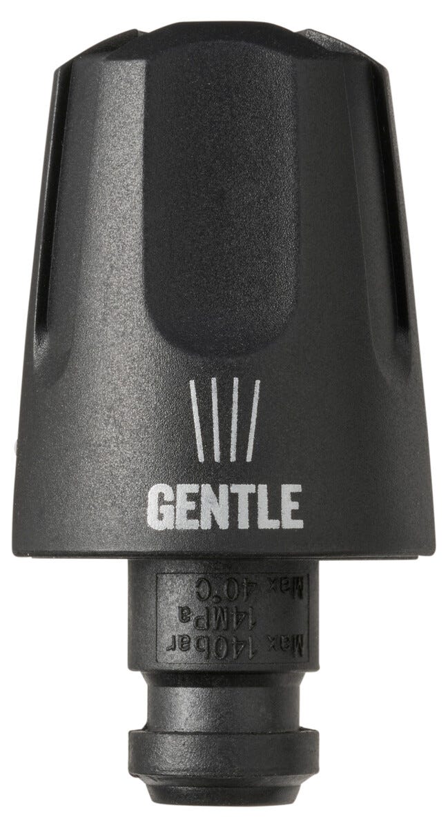 Tornadomunstycke Gentle med gul märkning till Nilfisk högtryckstvättar med Click&Clean-kopplning.