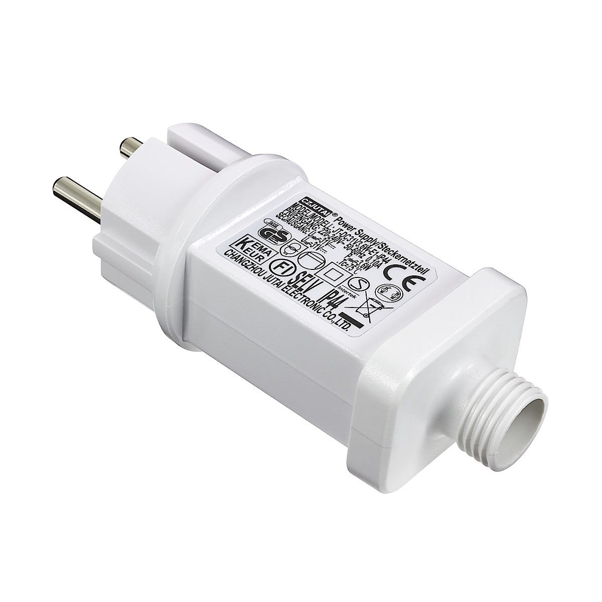 Muuntaja esim. LED-jääpuikkovalosarjaan (36-6752) ja uudempaan Lisa-tähtiverhoon (36-4181). Liittimen malli: 2 pyöreää nastaa.