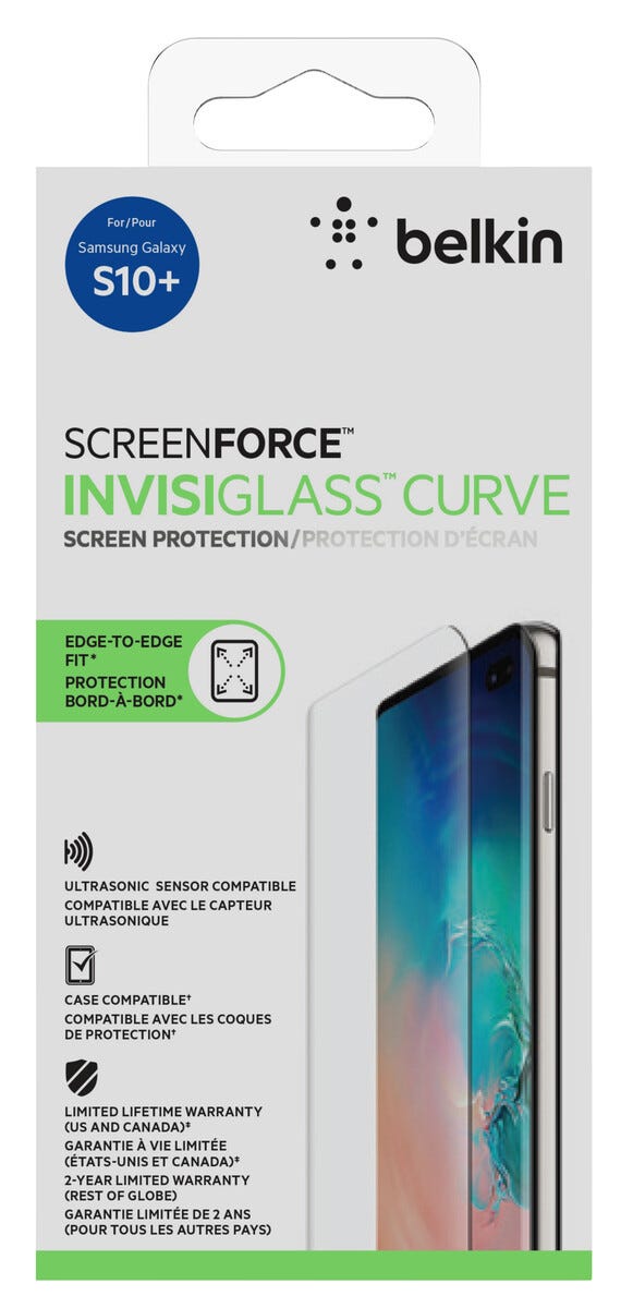 Näytönsuoja Samsung Galaxy S10+, Belkin ScreenForce InvisiGlass Curve