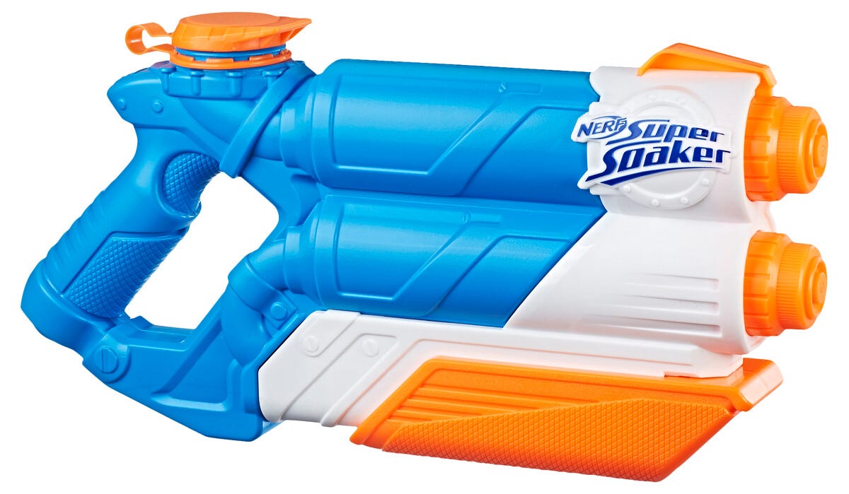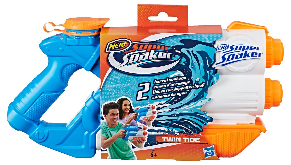 • Nerf Super Soaker Twin Tide – lättfylld vattenpistol med 2 rejäla strålar.