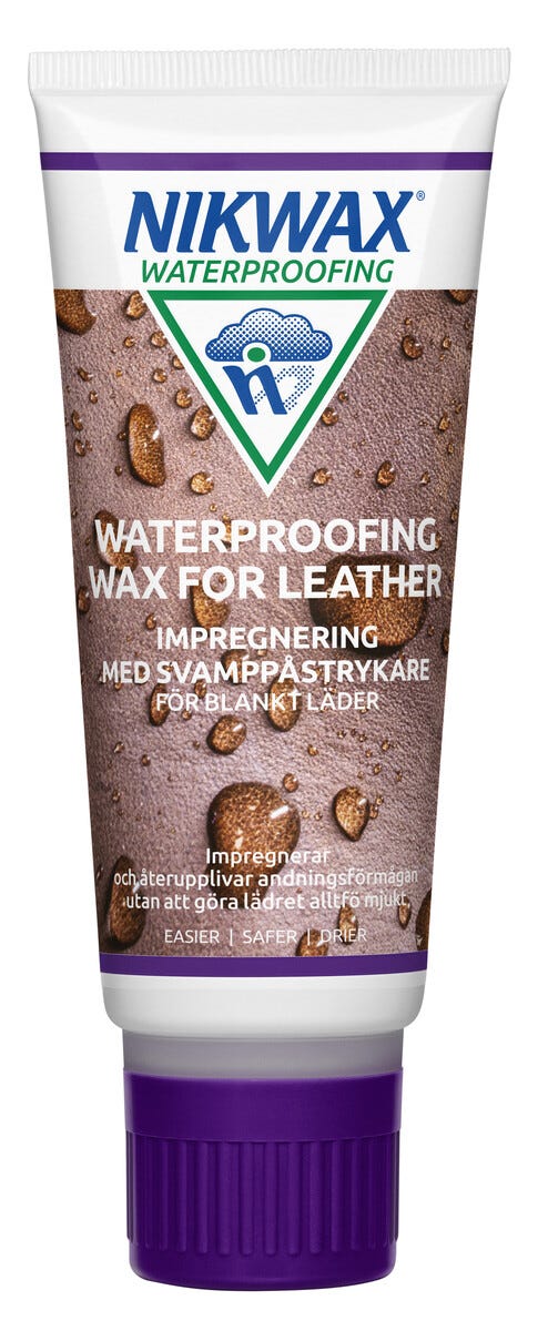 • Nikwax Waterproofing wax for leather – sienellä helposti levitettävä kenkävaha.