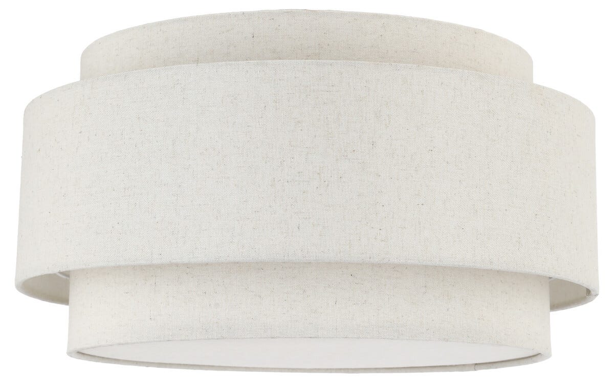 • Suuri kangaspäällysteinen kolmikerroksinen varjostin päästää kattoplafondin valon läpi luoden miellyttävän hohteen.