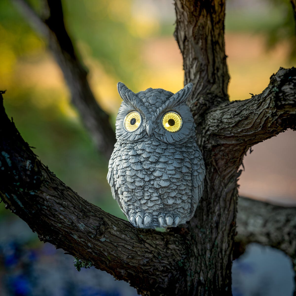 • Aurinkokennolla toimiva pöllö – aseta puutarhaan valaisemaan kauniilla silmillään.